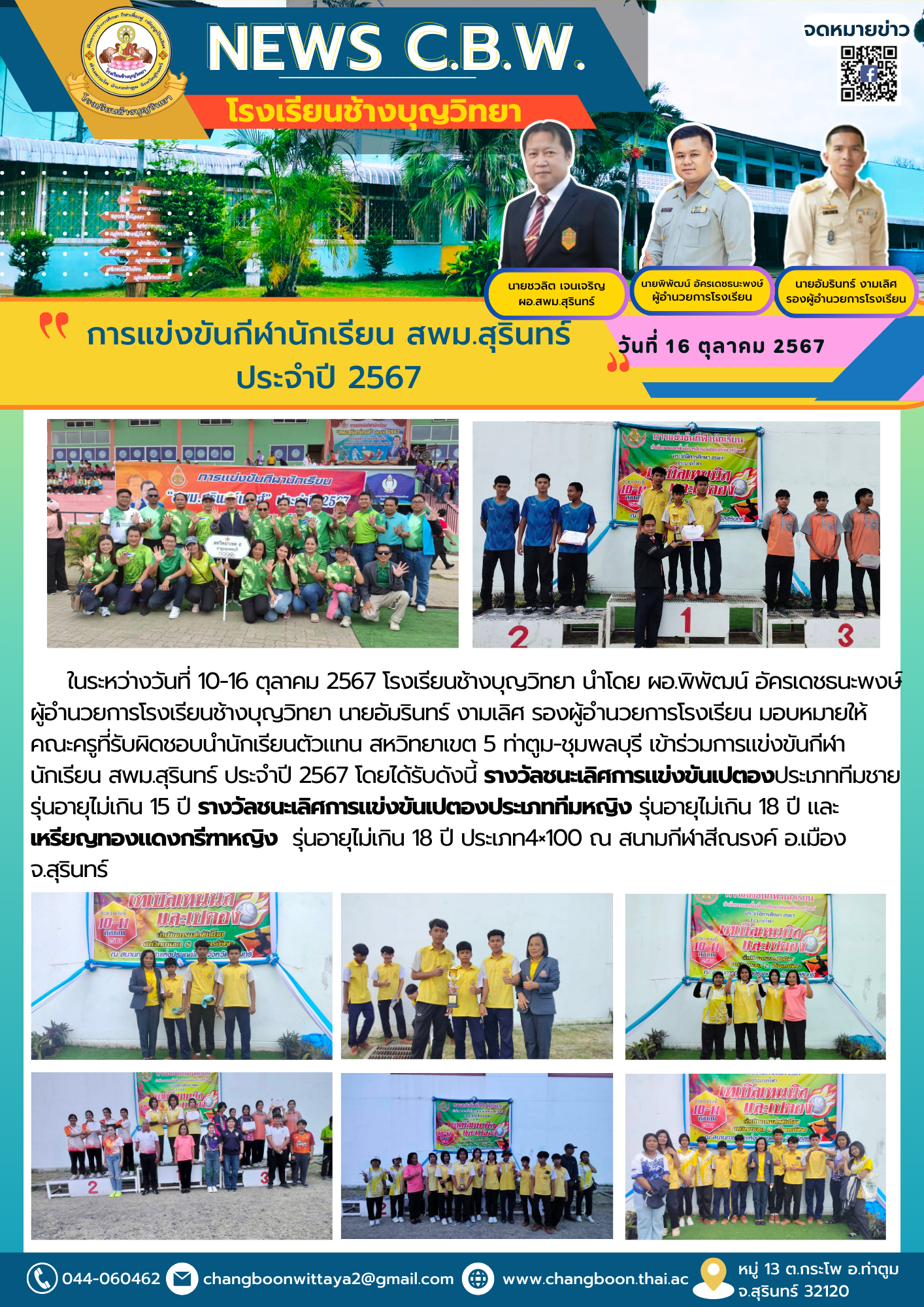 ผลการแข่งกีฬานักเรียน สพม.สุรินทร์ 2567