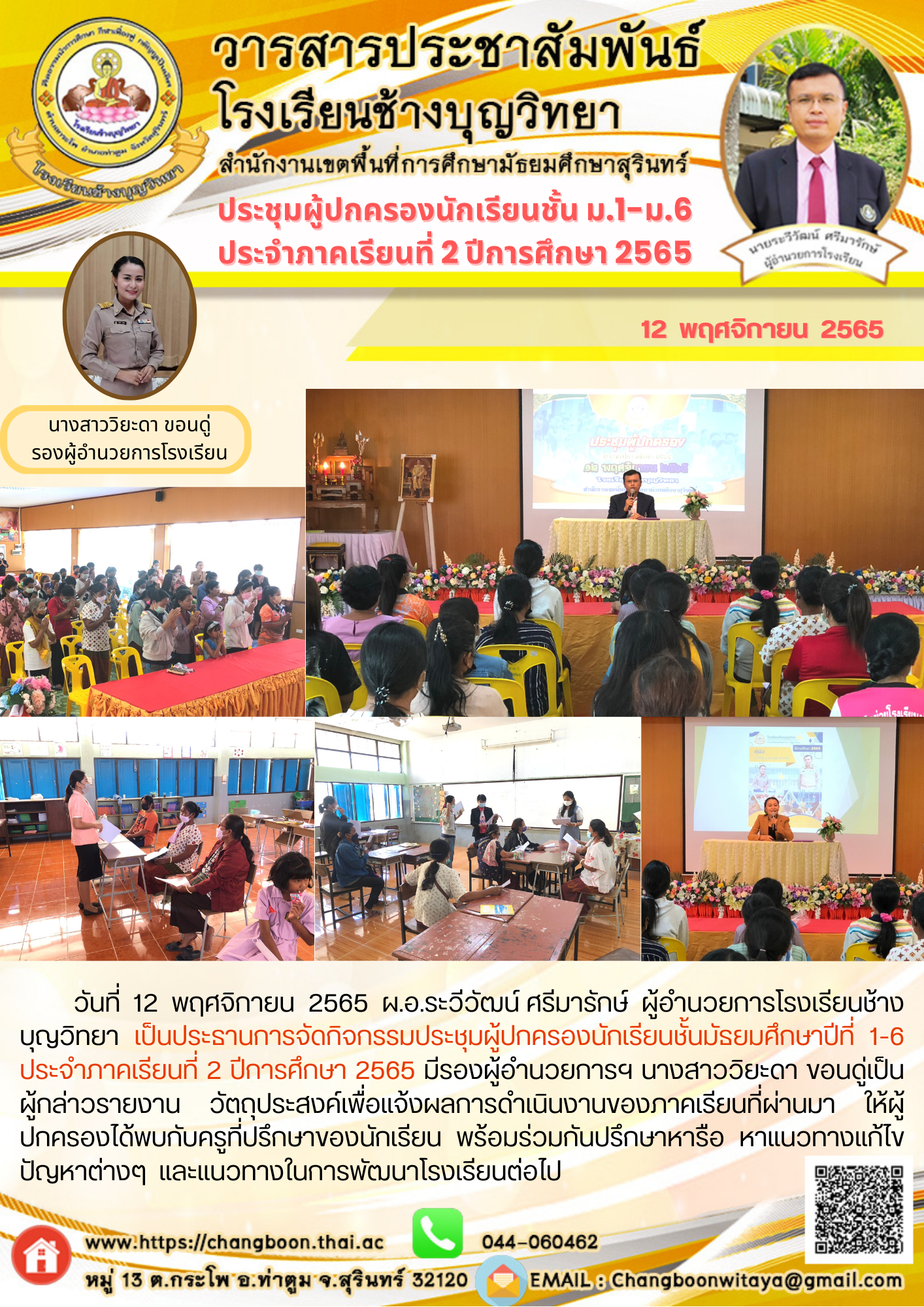 ประชุมผู้ปกครองนักเรียน ภาคเรียนที่ 2/2565